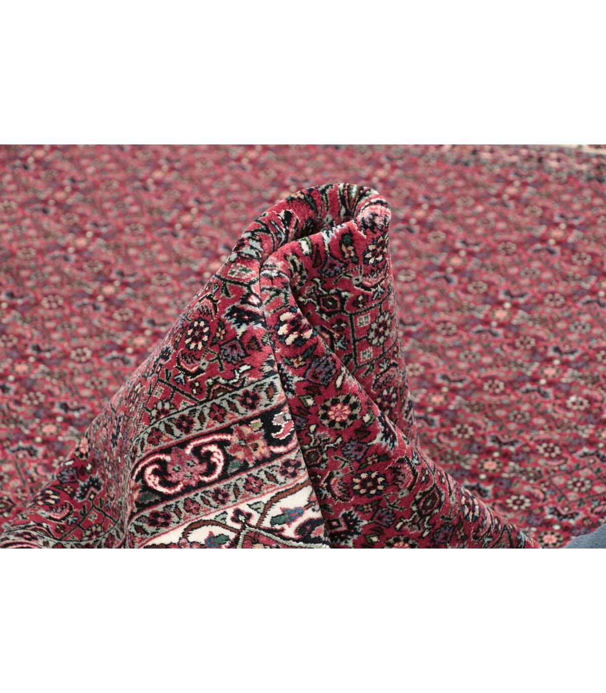 Bidjar ist eine Provinz im Nordwesten des Irans, in der größtenteils kurdische Nomaden und Halbnomaden leben. Die Bidjar-Teppiche werden fast ausschließlich in traditioneller Heimarbeit hergestellt, verhältnismäßig oft von Männern, da für die feste Knüpfung mehr Kraft benötigt wird als üblich. Der Bidjar zählt heute zu den beliebtesten Orientteppichen. Er zeichnet sich durch seine Dicke, Strapazierfähigkeit und Zeitlosigkeit aus. Eine besonders feine Qualität ist der Bidjar mit Seide, hier sind die Konturen der einzelnen Motive mit Seide hinterlegt. Die Seide reflektiert den Lichteinfall stärker als die Wolle, wodurch der Teppich einen edlen Glanz erhält. Im Persischen wird dieser Teppich als Gol Abrisham bezeichnet, was übersetzt Blume und Seide bedeutet.