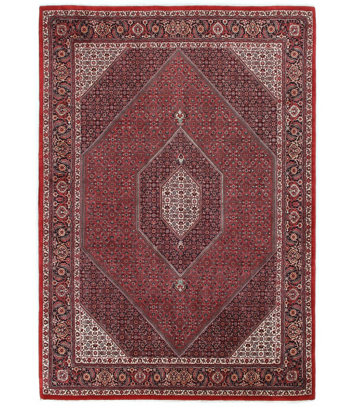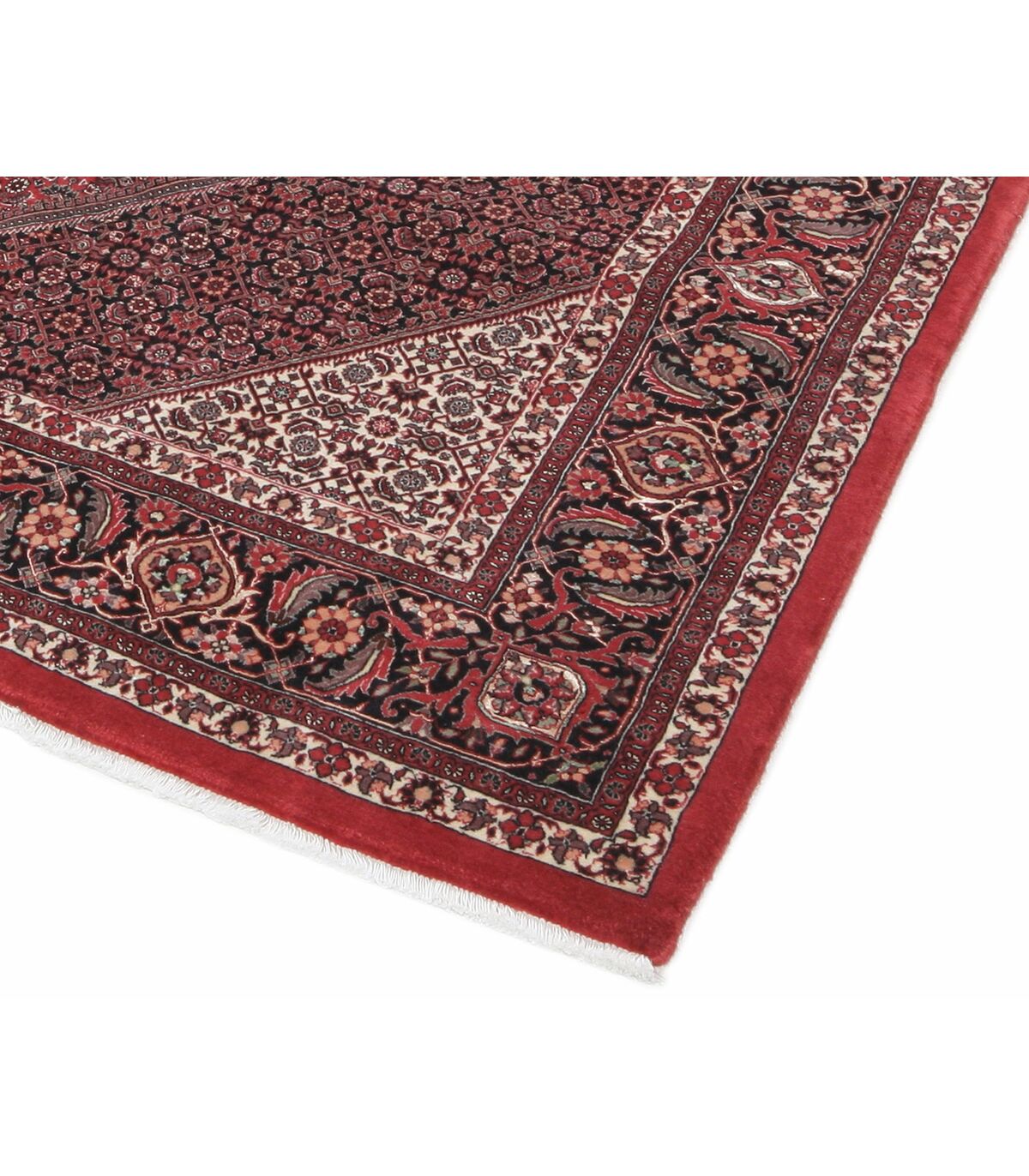 Bidjar ist eine Provinz im Nordwesten des Irans, in der größtenteils kurdische Nomaden und Halbnomaden leben. Die Bidjar-Teppiche werden fast ausschließlich in traditioneller Heimarbeit hergestellt, verhältnismäßig oft von Männern, da für die feste Knüpfung mehr Kraft benötigt wird als üblich. Der Bidjar zählt heute zu den beliebtesten Orientteppichen. Er zeichnet sich durch seine Dicke, Strapazierfähigkeit und Zeitlosigkeit aus. Eine besonders feine Qualität ist der Bidjar mit Seide, hier sind die Konturen der einzelnen Motive mit Seide hinterlegt. Die Seide reflektiert den Lichteinfall stärker als die Wolle, wodurch der Teppich einen edlen Glanz erhält. Im Persischen wird dieser Teppich als Gol Abrisham bezeichnet, was übersetzt Blume und Seide bedeutet.
