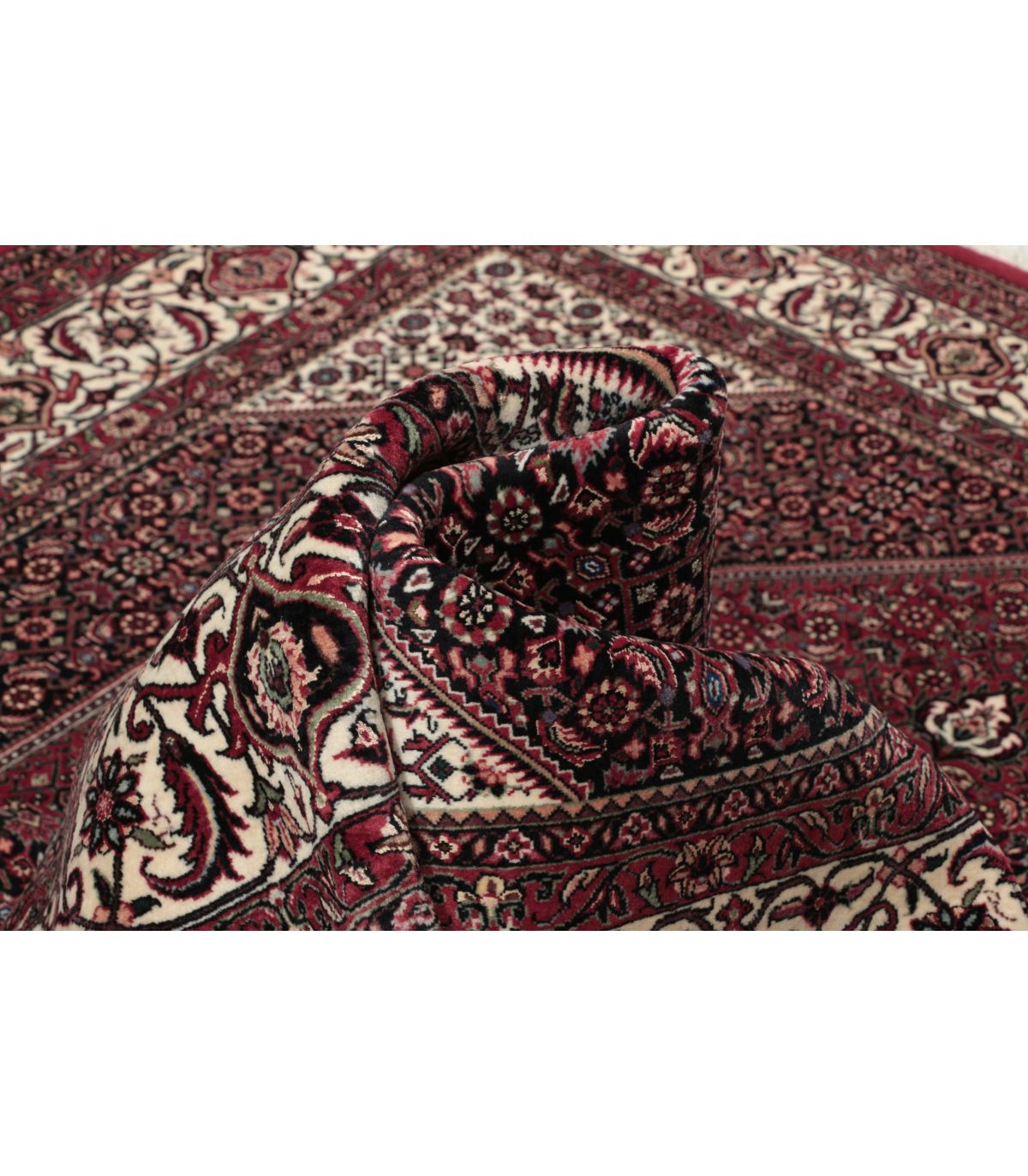 Bidjar ist eine Provinz im Nordwesten des Irans, in der größtenteils kurdische Nomaden und Halbnomaden leben. Die Bidjar-Teppiche werden fast ausschließlich in traditioneller Heimarbeit hergestellt, verhältnismäßig oft von Männern, da für die feste Knüpfung mehr Kraft benötigt wird als üblich. Der Bidjar zählt heute zu den beliebtesten Orientteppichen. Er zeichnet sich durch seine Dicke, Strapazierfähigkeit und Zeitlosigkeit aus. Eine besonders feine Qualität ist der Bidjar mit Seide, hier sind die Konturen der einzelnen Motive mit Seide hinterlegt. Die Seide reflektiert den Lichteinfall stärker als die Wolle, wodurch der Teppich einen edlen Glanz erhält. Im Persischen wird dieser Teppich als Gol Abrisham bezeichnet, was übersetzt Blume und Seide bedeutet.