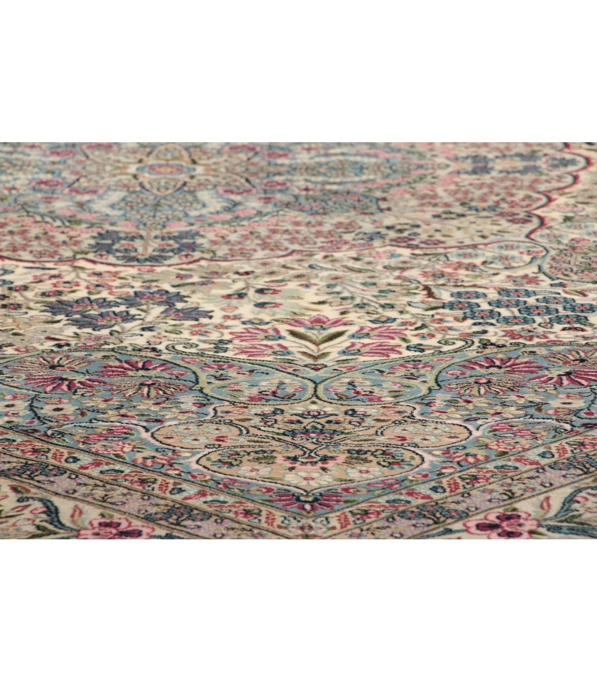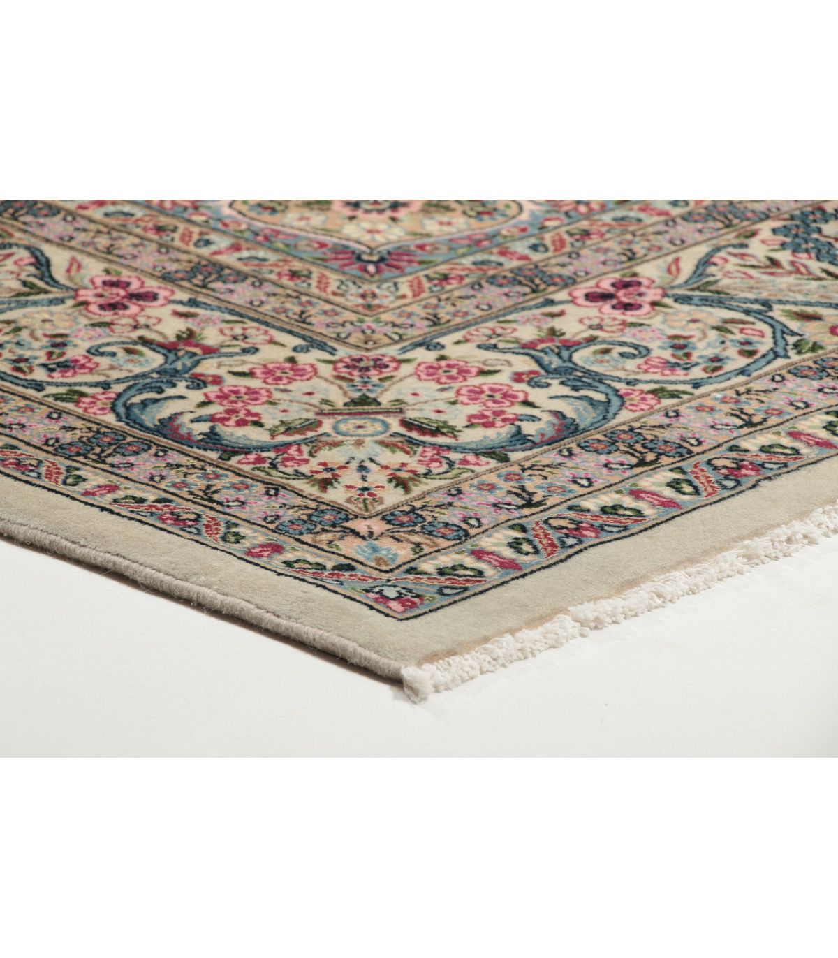 Kerman-Teppiche bestechen durch ihre filigrane Blütenornamentik. Bisweilen werden auch so genannte Spiegel-Kermans, d.h. ein freiflächiges Grundmuster mit einem Mittelstück geknüpft. Der Ort Kerman existiert bereits seit dem 4. Jahrhundert und ist berühmt für seine Teppiche.