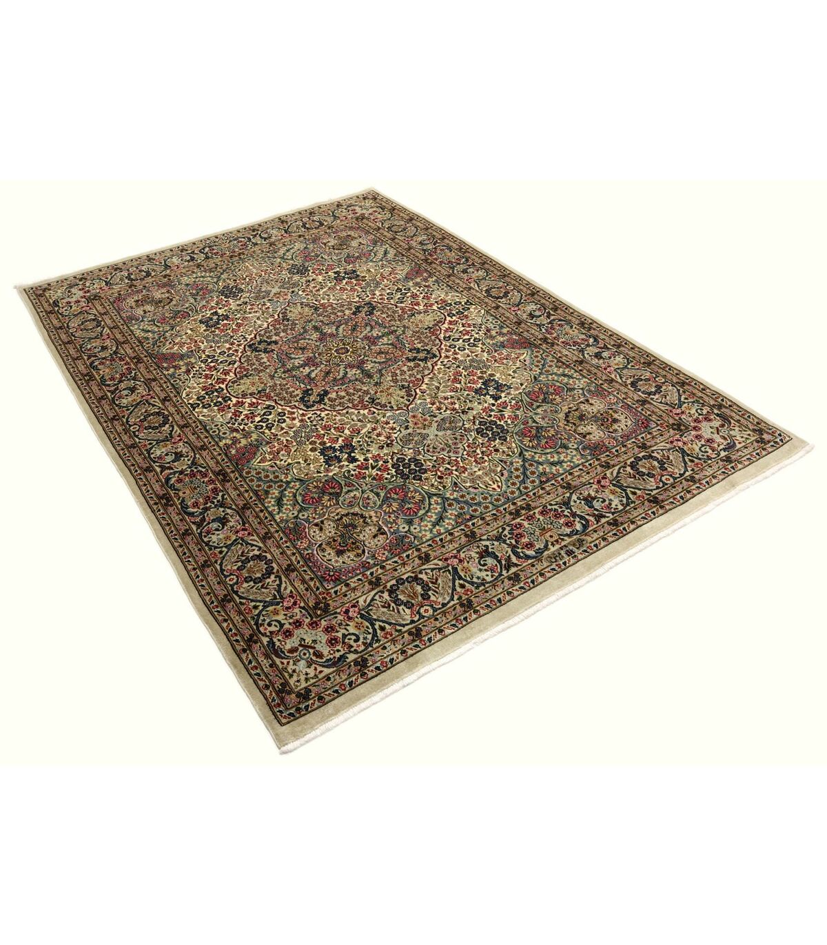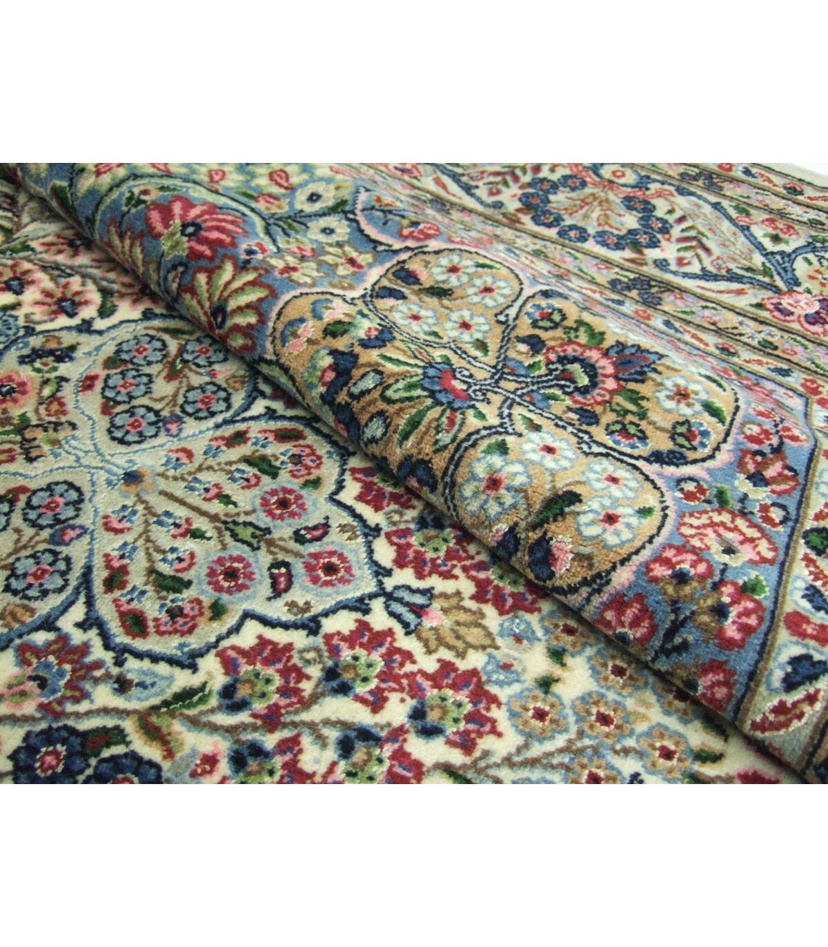 Kerman-Teppiche bestechen durch ihre filigrane Blütenornamentik. Bisweilen werden auch so genannte Spiegel-Kermans, d.h. ein freiflächiges Grundmuster mit einem Mittelstück geknüpft. Der Ort Kerman existiert bereits seit dem 4. Jahrhundert und ist berühmt für seine Teppiche. Sherkat Teppiche werden in den Knüpfstätten der Sherkate Farsh, einer Stiftung zu Gunsten des Perserteppichs, hergestellt. Die Teppiche erkennt man am geknüpften Signum.