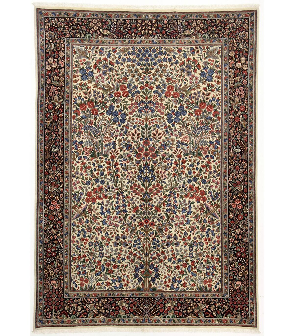 Kerman-Teppiche bestechen durch ihre filigrane Blütenornamentik. Bisweilen werden auch so genannte Spiegel-Kermans, d.h. ein freiflächiges Grundmuster mit einem Mittelstück geknüpft. Der Ort Kerman existiert bereits seit dem 4. Jahrhundert und ist berühmt für seine Teppiche.