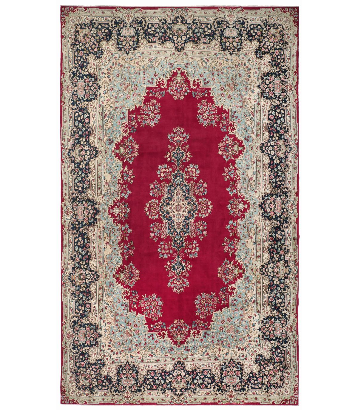 Kerman-Teppiche bestechen durch ihre filigrane Blütenornamentik. Bisweilen werden auch so genannte Spiegel-Kermans, d.h. ein freiflächiges Grundmuster mit einem Mittelstück geknüpft. Der Ort Kerman existiert bereits seit dem 4. Jahrhundert und ist berühmt für seine Teppiche.