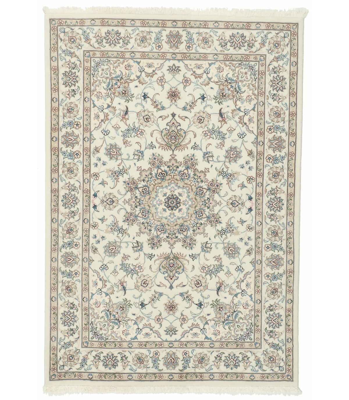 Die kleine Stadt Nain mit etwa 70.000 Einwohnern liegt 140 km östlich von Isfahan. Unter den Nain-Teppichen gibt es mit Nain 6La und Nain 9La hauptsächlich zwei Qualitätsstufen. Die Zahl gibt die Anzahl an Einzelgarnen an, aus denen der Kettfaden besteht. La bedeutet Schicht.