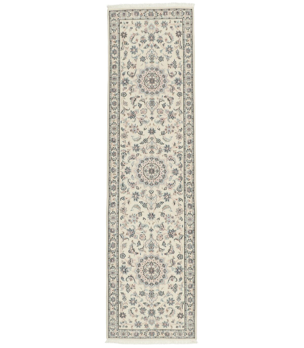 Die kleine Stadt Nain mit etwa 70.000 Einwohnern liegt etwa 140 km östlich von Isfahan. Unter den Nain-Teppichen gibt es mit Nain 6La und Nain 9La hauptsächlich zwei Qualitätsstufen. Die Zahl (vor La) gibt die Anzahl an Einzelgarnen an, aus denen der Kettfaden besteht. La bedeutet Schicht.Im Ort Kashmar im Nordosten von Tabas in der Khorrasan-Region werden auch überwiegend Nain-Muster nachgeknüpft. Unter den Nain-Teppichen haben diese mit einer Dichte mit ca. 250.000 Knoten pro Quadratmeter die niedrigere Knotendichte.