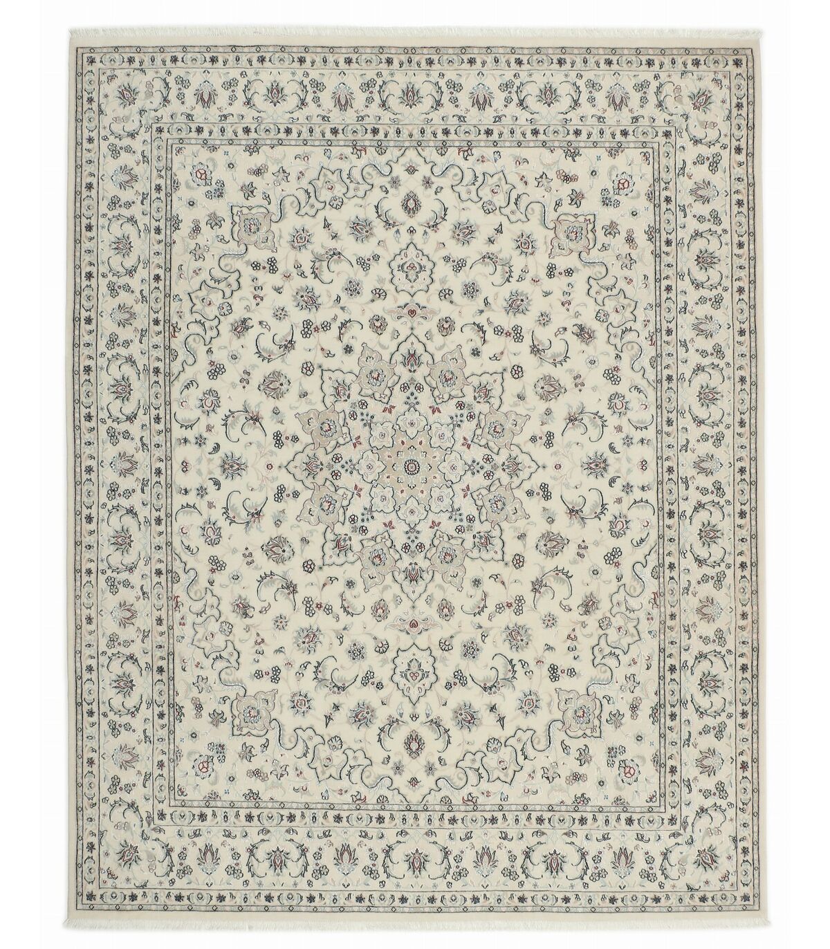 Die kleine Stadt Nain mit etwa 70.000 Einwohnern liegt etwa 140 km östlich von Isfahan. Unter den Nain-Teppichen gibt es mit Nain 6La und Nain 9La hauptsächlich zwei Qualitätsstufen. Die Zahl (vor La) gibt die Anzahl an Einzelgarnen an, aus denen der Kettfaden besteht. La bedeutet Schicht.Im Ort Kashmar im Nordosten von Tabas in der Khorrasan-Region werden auch überwiegend Nain-Muster nachgeknüpft. Unter den Nain-Teppichen haben diese mit einer Dichte mit ca. 250.000 Knoten pro Quadratmeter die niedrigere Knotendichte.