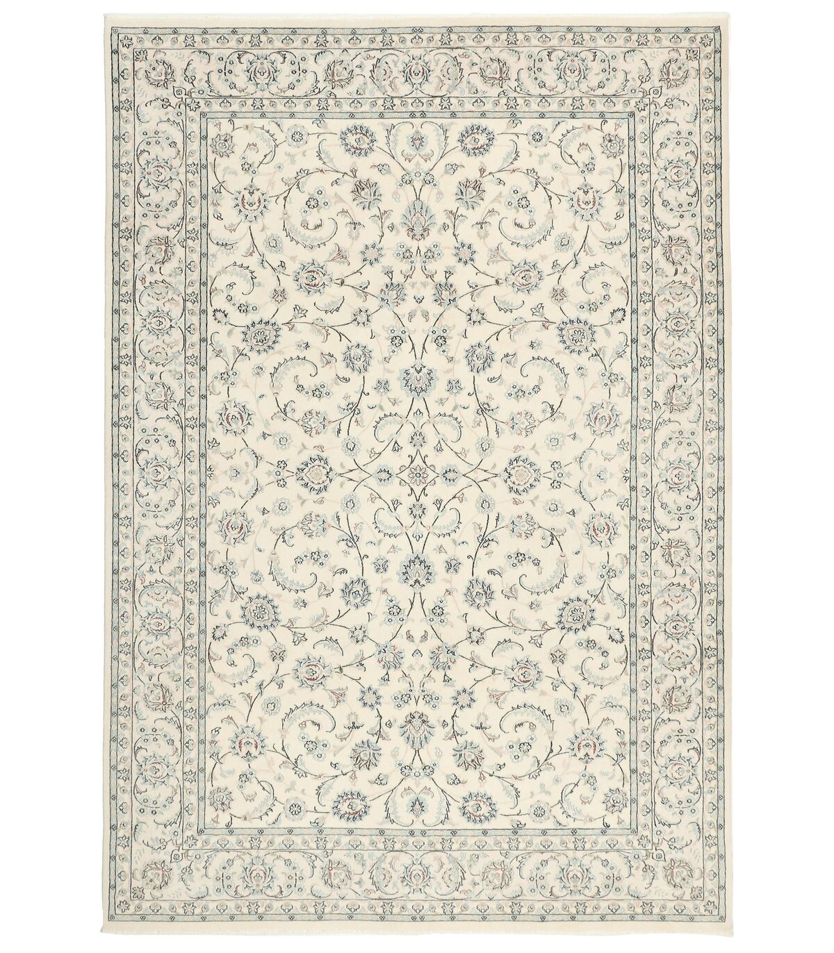 Die kleine Stadt Nain mit etwa 70.000 Einwohnern liegt etwa 140 km östlich von Isfahan. Unter den Nain-Teppichen gibt es mit Nain 6La und Nain 9La hauptsächlich zwei Qualitätsstufen. Die Zahl (vor La) gibt die Anzahl an Einzelgarnen an, aus denen der Kettfaden besteht. La bedeutet Schicht.Im Ort Kashmar im Nordosten von Tabas in der Khorrasan-Region werden auch überwiegend Nain-Muster nachgeknüpft. Unter den Nain-Teppichen haben diese mit einer Dichte mit ca. 250.000 Knoten pro Quadratmeter die niedrigere Knotendichte.